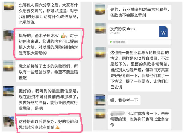 会后建立了导师与创业者的交流群,得到热烈的反馈,确实课程真的是干货满满,获益良多。李老师非常热情而大家解答问题。
