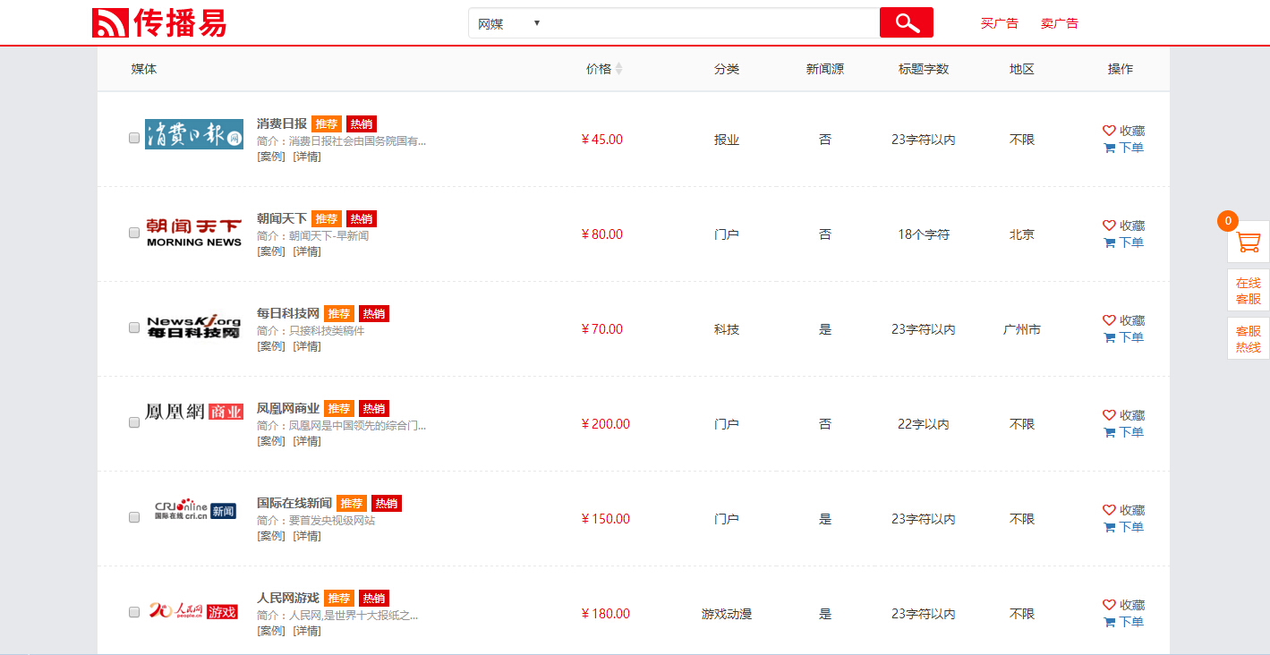 不同门户网站针对群体不同,价格也会有所变动。这10家媒体在传播易平台上的销量是十分可观的,也是平台力推的媒体主。