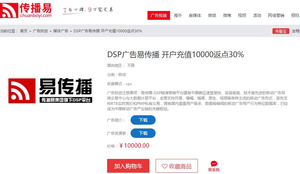 在传播易商城内,遍布着大量地KOL或网红推广资源。这些资源也更加容易成为推荐。为了帮助企业更精准地触达、沉淀忠诚用户,传播易商城旗下易传播-DSP精准营销平台专为广告主提供精准营销服务,最大化地提高广告的投放效率,提升用户粘性。