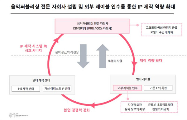 引进多功能制作中心系统是SM 3.0战略的核心,通过5个制作中心保证持续的事业成果,是推进IP收益大化的方案。在此过程中,为了通过与Kakao的事业合作使IP价值大化,两家公司互相完善IP事业的优势和弱点,计划增加新的商机。