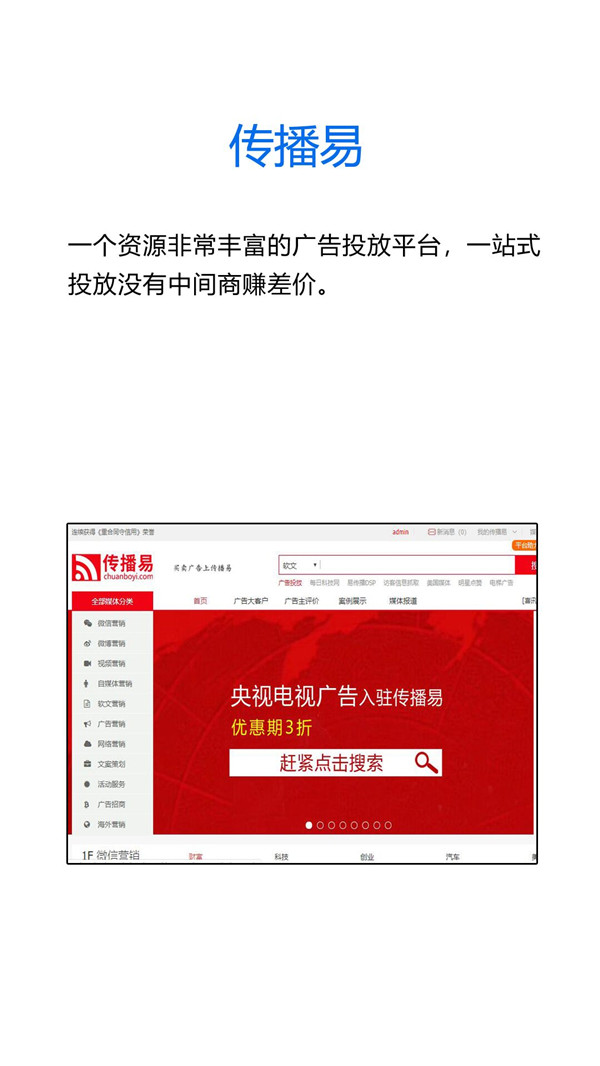 传播易隶属于广州朝闻天下信息技术有限公司,是广告行业交易电子商务化的发起者,优先提出了把广告交易B2B......