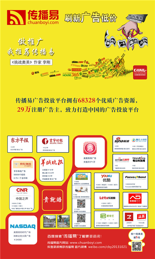 媒体邀请或是很多企业主亟需的资源。传播易商城为广告主提供全面、快捷的资源以便其选择。以下是传播易......